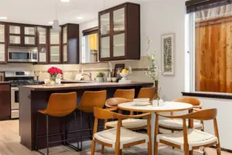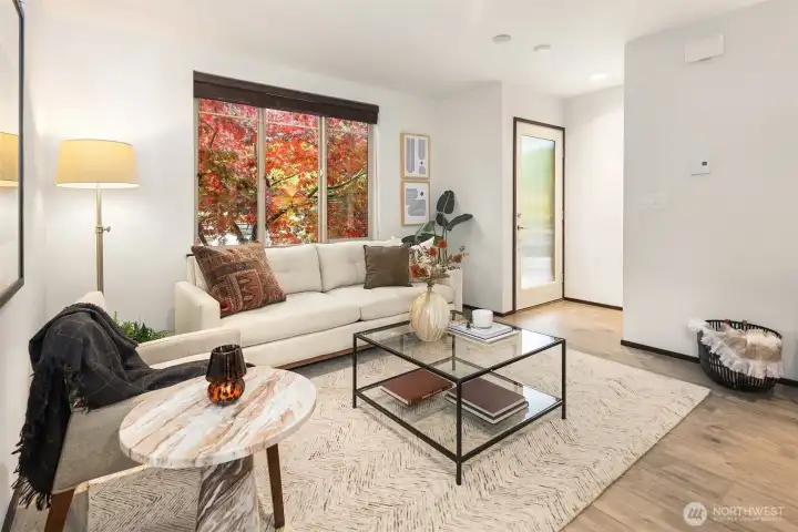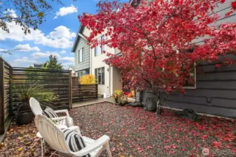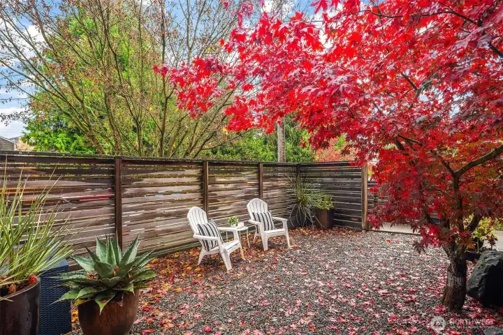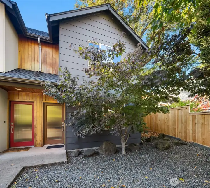 Sleek modern design meets functionality in this thoughtful two-story townhome. A reeded glass entry door opens to light-filled interiors, where a pretty tree frames the window for added privacy. The gourmet kitchen features a natural stone serving bar, high-end appliances & reeded glass cupboards with abundant storage. The open living room is perfect for both relaxation & entertaining. Upstairs, two bedrooms share a full bath & laundry for added convenience. Enjoy excellent privacy, a well-designed layout, off street parking & a private courtyard entry. Recent updates include new flooring, lighting & fencing. Just minutes from the West Seattle Junction, this Fauntleroy home blends scenic tranquility with urban convenience.No HOA fees.