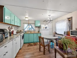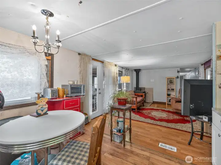 Charming and well-kept manufactured home featuring 2 bedrooms and 1 bathroom. The spacious living room offers a cozy fireplace and laminate flooring that flows through the main living areas. The kitchen provides plenty of room for cooking and dining, with a comfortable layout that feels open and inviting. Both bedrooms feature wall-to-wall carpet for added warmth. Enjoy a large covered back patio—perfect for relaxing or entertaining. Washer and dryer included for added convenience.