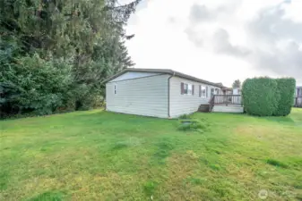 Spacious double-wide in Country Estates 55+ park, located in Montesano. This 3 bed, 2 bath home offers a primary ensuite, vinyl windows, and generous living/dining areas. Kitchen with double oven, family room, and utility room add convenience. Enjoy full baths, carport with storage shed, and multiple decks including a covered front entry. End-of-road location with greenbelt views provides privacy and a serene setting.