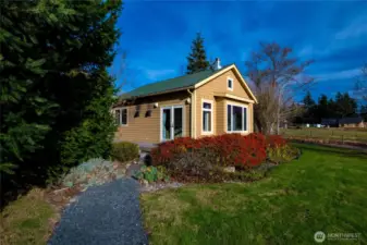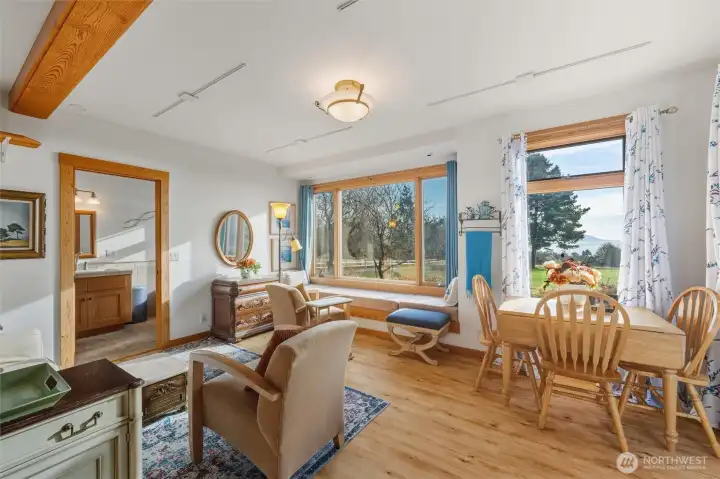 A tranquil, sun-filled, & highly sought-after location, this private 3.2-acre property captures the wild beauty overlooking the San Juan Islands and sweeping views of the Strait of Georgia. The main home offers easy living w/ a peaceful primary suite, harmonious indoor–outdoor flow, & a large garage ideal for storage, projects, or gear. Upstairs, a flexible second suite; w/bedroom, bath, living room,& multi-use kitchen provides excellent private apartment potential via optional exterior access. The beautifully maintained cottage features reclaimed barn beams, window seat, soaking tub, cozy fireplace, Pella windows, french door, JennAir range, Bosch dishwasher, attached laundry, shop, & patio, while the grounds include multiple outbuildings.