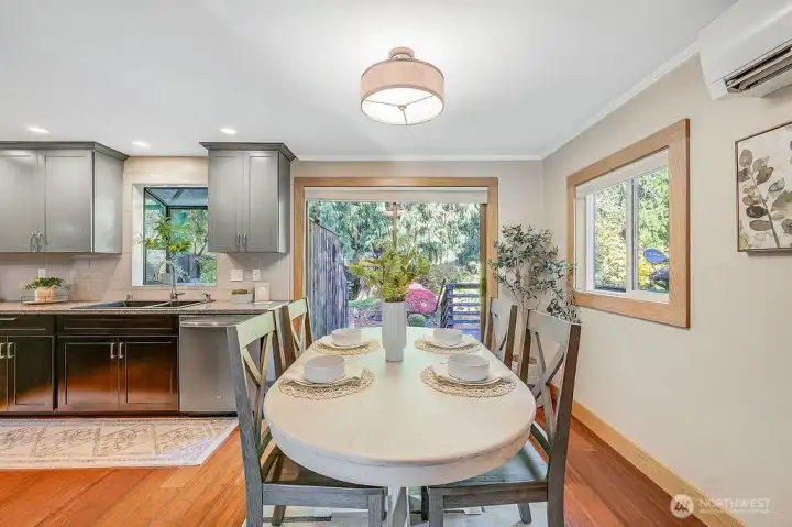 Be Home For The Holidays in this beautifully updated 4 bedroom/2 bath home bordering peaceful Chimacum Creek. The tastefully refreshed kitchen & bathrooms, new paint & new flooring (wood & carpets) blend modern style with warmth & charm. Gorgeous wood trimmed windows & wall accents add character & a natural PNW feel. Mini-Splits on both levels will provide energy efficient heating & cooling. Outside you will enjoy the lush setting surround by old growth trees & mature landscaping. Garden lovers will appreciate the raised garden beds, berry trellis, variety of Rhody's, established bulbs & 2 garden sheds for both gardeners & hobbyists alike to use for year round projects. This property is the perfect blend of comfort, nature, and convenience.