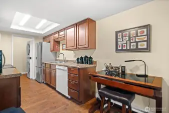 Welcome home to the highly sought-after Oakbrook Country Club Condominiums! This beautifully maintained 2-bedroom, 2-bath home offers the perfect balance of comfort and convenience. Step into a bright, open living room featuring a cozy fireplace and a private covered deck. The efficient galley kitchen includes a new refrigerator, ample storage, and a new washer/dryer. The spacious primary suite features a large walk-in closet, vanity, and private bath. A second bedroom and full guest bath offer versatile space. Assigned parking is located conveniently just outside your back door. Dedicated storage until. Enjoy wonderful community amenities including two outdoor pools, a clubhouse, BBQ area, access to Oakbrook Golf Club and Adriatic Grill.