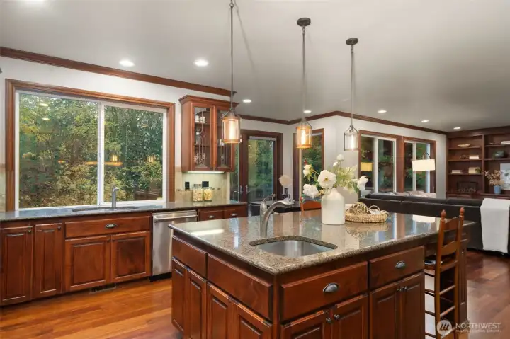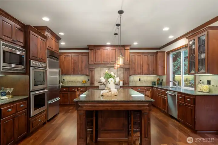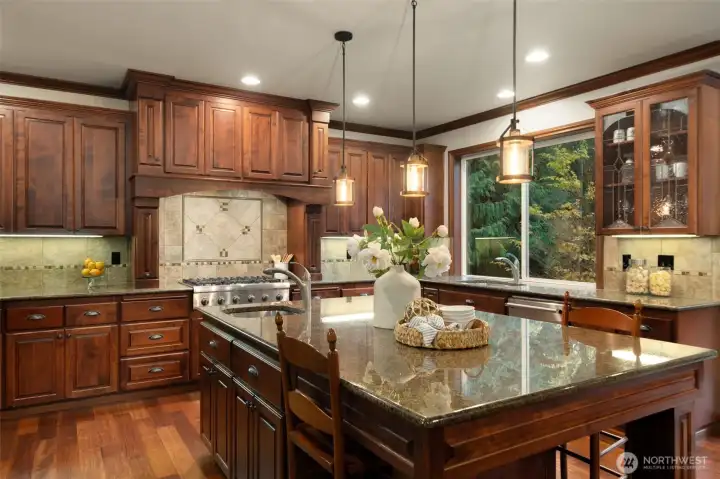 Discover timeless luxury & craftsmanship. Meticulously maintained, John Buchan-custom built estate featuring 5 bedrooms, 4.25 baths, & a spacious home office. Situated on an acre of beautifully manicured grounds surrounded by a natural buffer with peaceful dog-walking trails. Step inside to Brazilian cherry hardwoods, a chefs kitchen with Thermadore appliances, 3 gas fireplaces & an open, easy floor plan, perfect for daily comfort & elegant entertaining. Handcrafted cabinets, built-ins, & impeccable quality throughout. Generous primary with 2 walk-in closets & spa-like tub. Finished oversized 3-car garage & easy access to Seattle ferry, charming Winslow, prized schools, boutiques, restaurants, galleries, wineries, & vibrant local festivals.