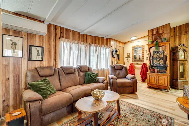Charming 2-bedroom, 2-bath home located in a well-maintained 55+ community. Features new LVP flooring throughout and a primary suite with a spacious walk-in closet. The carport has been converted into a functional storage shed. Enjoy a hardscaped yard with a backyard garden featuring blueberry and raspberry bushes. Mini-split system provides efficient heating and cooling. All appliances stay—including refrigerator, washer, and dryer. Newer roof adds peace of mind. Community amenities include a clubhouse that hosts events and weekly activities. Lot space fee covers water and sewer, road maintenance, off-street driveway parking for each unit, storm drainage, pruning of park trees, park fence maintenance, and landscaping around the clubhouse.
