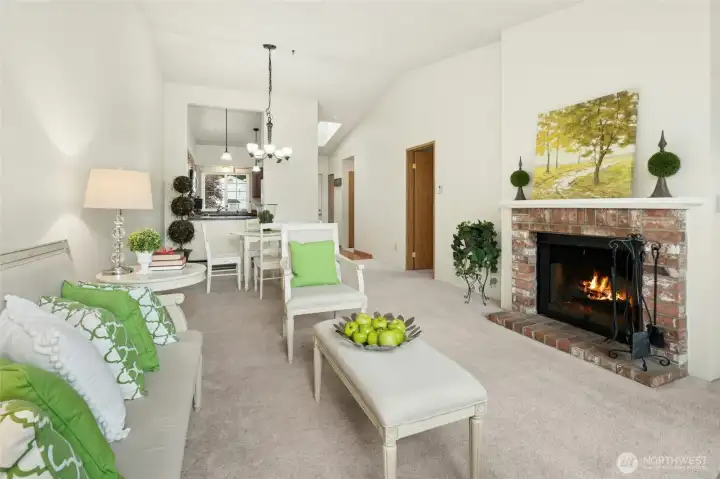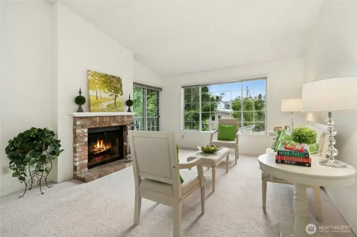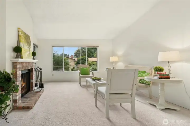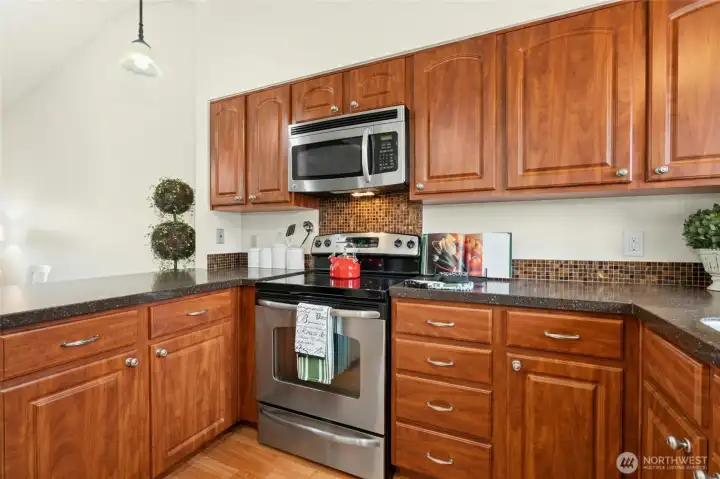 Welcome home to your top floor beautifully remodeled condo at Concord Hill featuring 2 bedrooms, 1.25 bathrooms and 897 SF. Bright, open and spacious floorplan with south-facing views. Chef's kitchen features SS appliances, cherry cabinets, black granite countertops & laminate floors. Entry skylight and impressive vaulted ceilings in the dining and living room with wood burning fireplace. Oversized Master Bedroom includes access to the private balcony and boasts multiple large closets. Fantastic conveniences include an in-unit Maytag Washer/Dryer and individual garage. Within walking distance to Factoria Mall, restaurants & Newport High School. Centrally located just minutes to I-405 and I-90. Award winning Bellevue Schools!