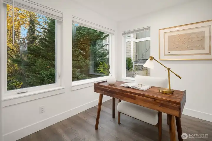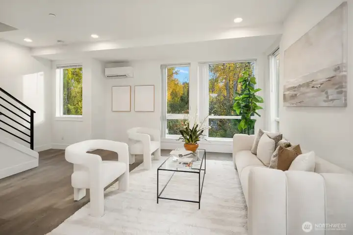 Welcome to Hiatt Park! This stylish 3 bed, 3 bath townhome blends luxury and functionality with thoughtful design throughout. Enjoy soaring vaulted ceilings and expansive windows that flood the space with natural light, while custom tile finishes add a touch of elegance. The chef’s kitchen features Italian Bertazzoni appliances, granite countertops, a spacious pantry, and a large island perfect for entertaining. Dual primary suites offer walk-in closets and private baths, offering flexible living options. Enjoy the efficiency of a tankless water heater, a spacious 2-car garage, and low HOA dues. Conveniently located near Burke Gilman Trail entrance, Lake WA, Kenmore Lanes, parks, shopping and dining.