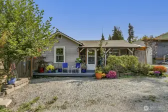 Charming 1BR cottage blends cozy character with modern updates in a convenient location near I-5, parks, shopping, hospitals and transit. Light, airy home with new flooring, refreshed kitchen and bath, quartz counters, farmhouse sink, updated appliances and thoughtful finishes. Enjoy Mount Baker and water views from the lush front garden with mature fruit trees. Four versatile outbuildings (three insulated with electricity) are perfect for office, studio, gym, so many possibilities. Two parking spaces plus shared drive. New washer stays. A peaceful retreat with room to work, create and grow.
