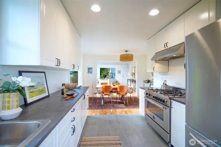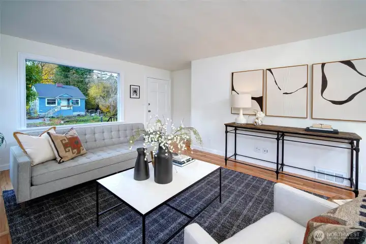 Fun & updated home on oversized lot. Recent main floor remodel. Move in ready! Large, level lot is located in close proximity to Greenlake. Simply enjoy the 7500 Sf lot for gardening or get excited about future ADU and/or DADU expansion potential. Modern open floor plan living: Spacious remodeled kitchen opens to dining room & living area. Chef's stove. Fireplace. SW facing living room windows for an abundance of daylight. Recently refinished hardwood floors. Remodeled bathroom. Partially finished lower level w/ separate entrance. Family/TV room plus 3rd non conforming bedroom/office. 320 SF garage plus driveway on North side of property = DADU potential. New roof, exterior paint (2024) New interior paint, retaining wall/landscaping (2025)