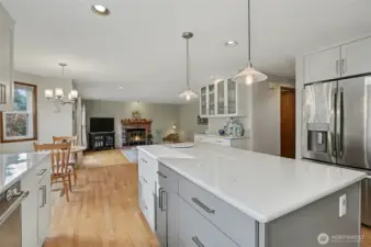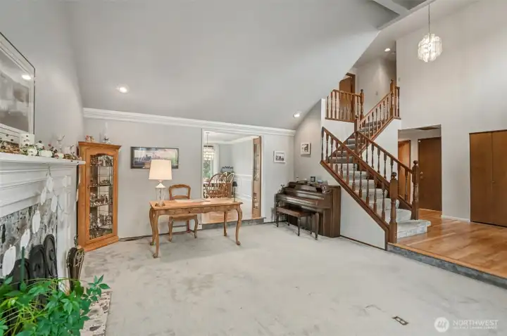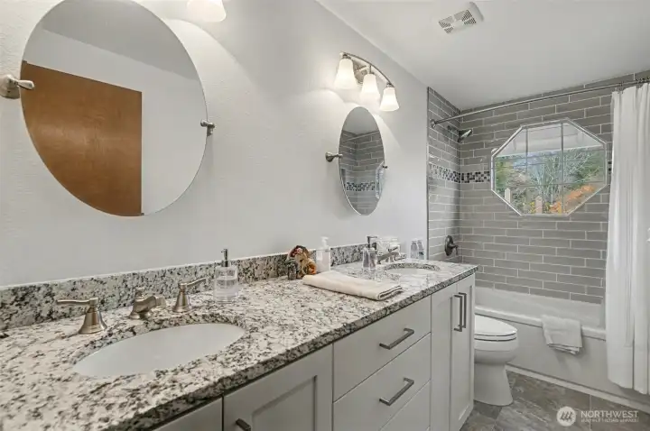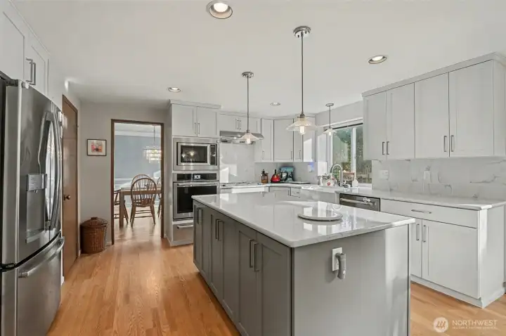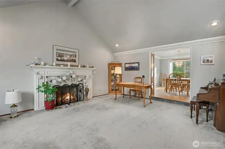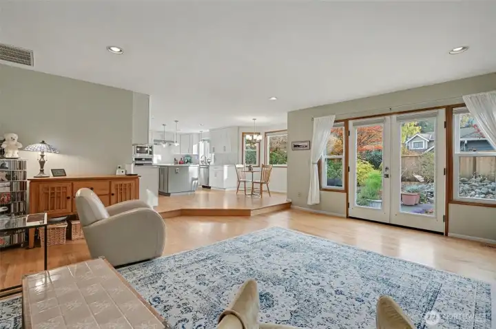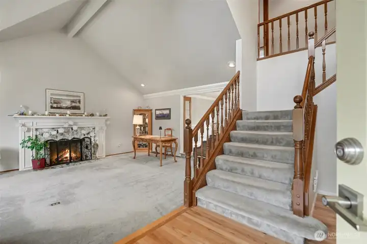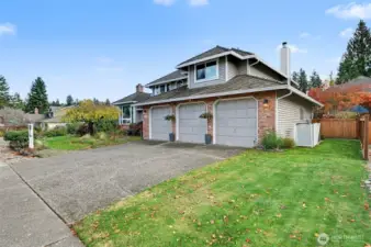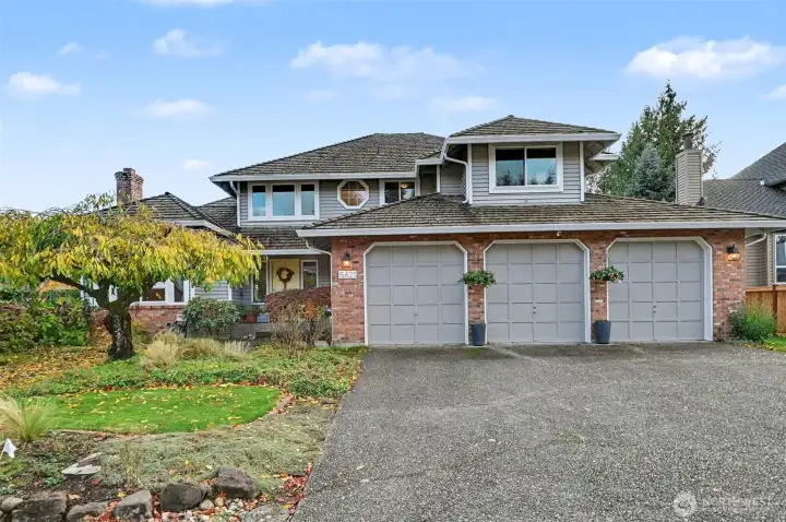 Located in sought-after Carriagewood, this 2670 sf, 4-bedroom home sits on a flat 9,100 sf corner lot with open, flowing spaces and seamless indoor-outdoor living via French doors. Updated with a modern kitchen and bathrooms, fresh paint, and hardwoods in the kitchen, dining, and family rooms. Triple-paned windows offer comfort and efficiency. Upstairs laundry adds convenience. The deep 3-car garage with 8-ft doors includes backyard access—plus a large storage closet on the main. Fully fenced with homeowner-owned fencing for added privacy. Enjoy gas and traditional fireplaces for cozy ambiance. A tranquil backyard water feature with waterfall completes the outdoor experience. A rare blend of location, livability, and thoughtful upgrades.