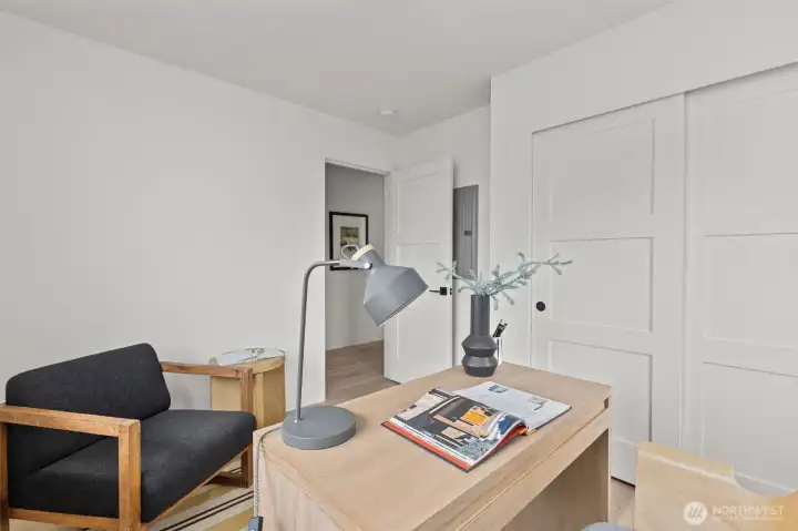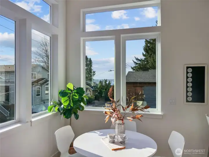 Contemporary design and quality craftsmanship define this stand-alone 3-bedroom DADU delivering light, volume, and privacy. Vaulted ceilings and real hardwoods set a warm tone for the open living and designer kitchen featuring Belmont cabinetry, quartz surfaces, induction range, and elegant fixtures. The primary suite boasts a walk-in closet and custom-tiled bath, complemented by two additional bedrooms and full guest bath below. High-efficiency HVAC and water systems ensure year-round comfort, with no-carpet interiors, a fully fenced private yard, and dedicated off-street parking. A rare fusion of independence, sustainability, and West Seattle charm just minutes from Lincoln Park, shops, and waterfront trails.