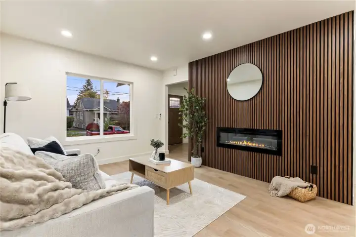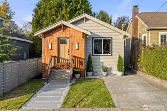 Welcome to this spacious Phinney Ridge Craftsman! Beautifully renovated throughout, new electrical and plumbing, new windows. The main level features 9-ft ceilings, two bedrooms, a full bathroom, a stylish modern kitchen with upgraded smart appliances, sleek cabinets, and LED lighting. Inviting living room with a contemporary fireplace. The lower level offers a flexible living space with a separate entrance perfect for use as an ADU. It includes a full kitchen, dining area, bathroom, large bonus room that can serve as a bedroom, and a utility room. Additional highlights include a tankless gas water heater, A/C, fenced backyard, covered deck, and park-like seating area ideal for relaxing. A private parking pad provides on-property parking.