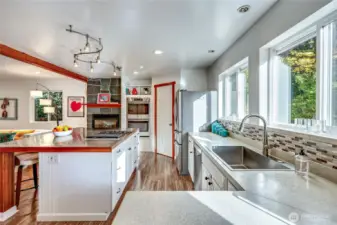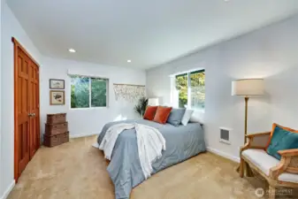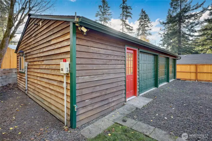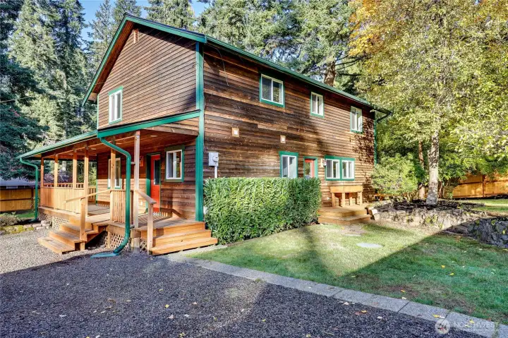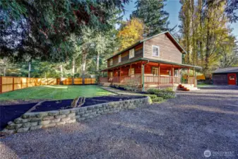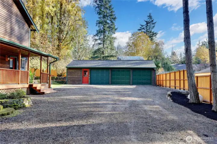 Wonderful NW craftsman with covered wrap-around porch. This home lives as 3 bedrooms. The spacious kitchen great room has stainless appliances & a cozy propane fireplace that blends into the large living room. In addition there is a generous bright dining room surrounded by windows, ½ bath and large laundry room/mud room that complete the main floor. Upstairs includes a Charming primary suite with full bath, & large walk-in closet, Just down the hall is a 2nd bedroom, a full bath, and a 3rd bedroom with closet, along with hardwood & carpet flooring. Detached 3+ car garage with shop & additional bathroom. Home has a whole house fan. Sunny front & back yards, fire pit and shed. Fully fenced with gate. Close to schools, ferry, parks & downtown