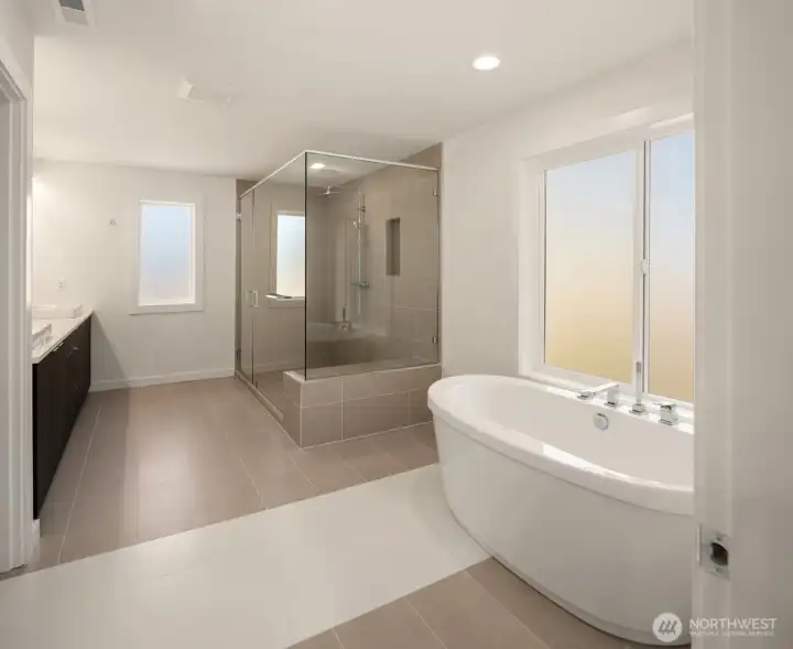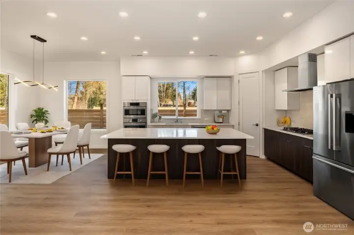 New Luxury Homes By Datta Homes, Lot 5 , MOVE IN READY. A prime spot w/ easy commute to Bellevue and Seattle modern NW contemporary design, open layout with 10-ft ceilings and 8-ft doors on the main level, main-level office & bedroom w/ 3/4 bath. Entertain in style w/ a chef's dream kitchen & island off spacious great room, 142 sq ft outdoor room for indoor-outdoor experience. High-end features abound: Bosch SS appliances (fridge included), 3cm Quartz counters, European cabinetry, and luxury fixtures (Grohe, Kohler, DVX, Toto) throughout. primary suite comes with a 5-star bath, spacious walk-in custom closet. e -charging. Backs to protected green belt.