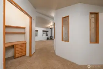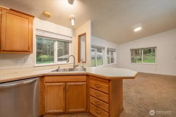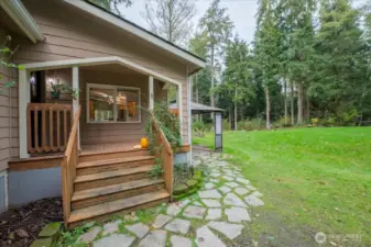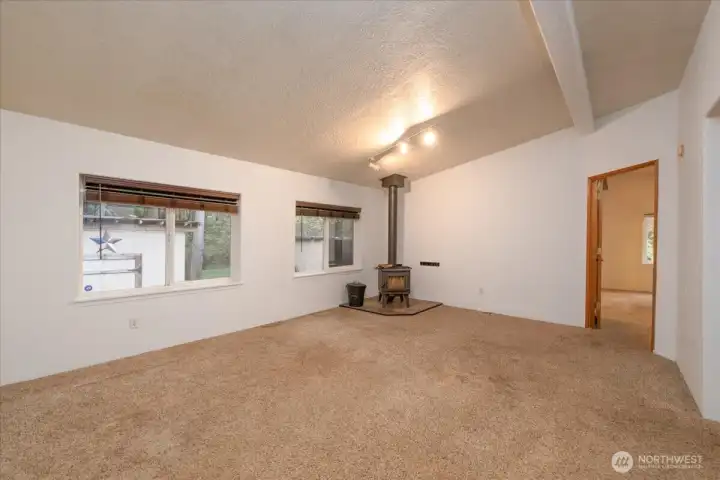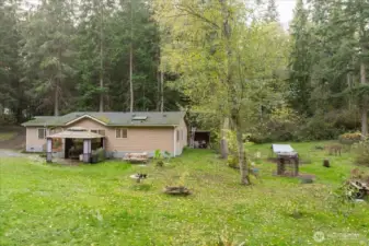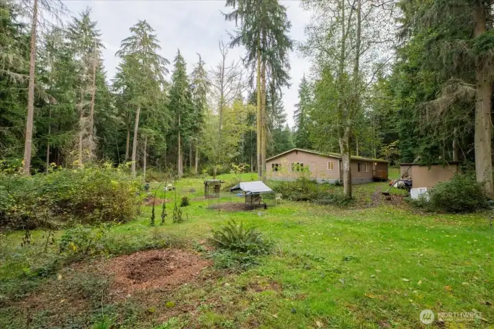 Welcome to your own wooded 5-acre retreat just outside of Oak Harbor! This home is tucked away at the end of a private road, surrounded by natural, tree-lined beauty, with space for all your RV parking, shop, or garage-building plans. Inside, it features a great floor plan, including large kitchen, ample living space, built-in office area, large primary bedroom with an ensuite bathroom, & closet with custom shelving. The vaulted ceilings throughout give this home an open, spacious feel. Enjoy cozy evenings by the wood-burning stove or warm summer days relaxing outdoors on the patio. The large yard includes private nature trails on your own acreage & a versatile shed that could be turned into an off-grid ADU, playhouse, or storage space.