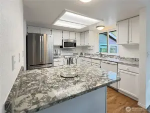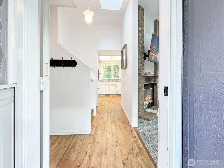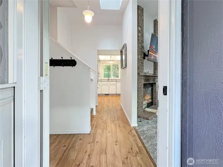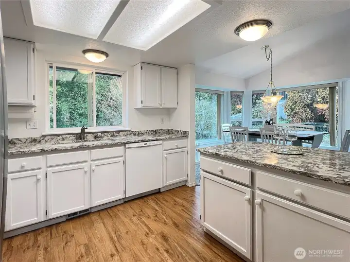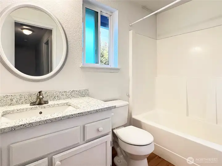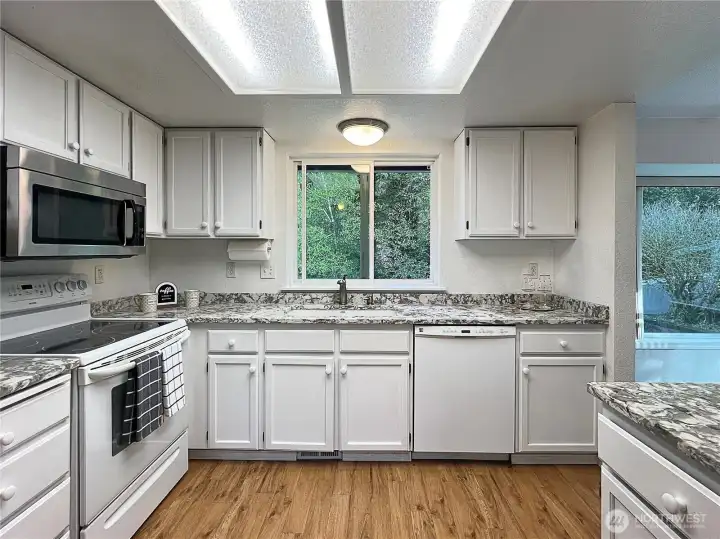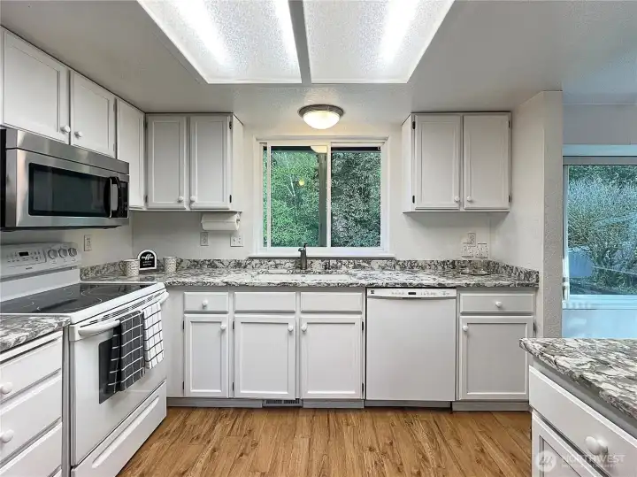 Light-filled tri-level home, 1,599 sq ft, 3 bedrooms, 2.5 baths & a flowing open floor plan perfect for modern living. The vaulted-ceiling living room with gas fireplace connects to the dining area & updated kitchen with granite countertops-ideal for entertaining. Upstairs features a spacious primary suite with full bath, plus two additional bedrooms & an updated hall bath. Lower-level family/rec room opens to a semi-enclosed covered patio, providing year-round outdoor living. Enjoy a fully fenced, landscaped backyard with room for gardening & play, all backing to open space for privacy & a peaceful setting. Lovingly maintained & move-in ready, this home offers comfort, style & convenience. Easy commute to JBLM, VA, WSH & American Lake.