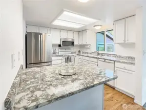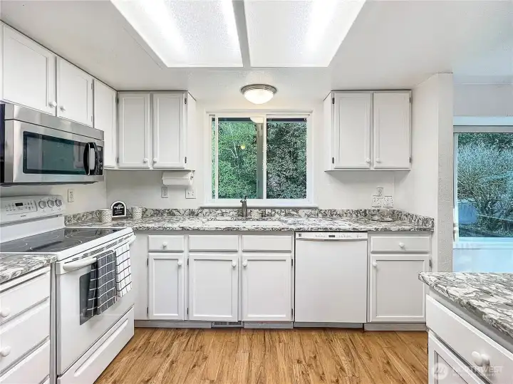 Light-filled tri-level home with 1,599 sq ft, 3 bedrooms, and 2.5 baths featuring a flowing open floor plan ideal for modern living. The vaulted-ceiling living room with gas fireplace opens to the dining area and updated kitchen with granite countertops, perfect for entertaining. Upstairs offers a spacious primary suite with full bath, two additional bedrooms, and an updated hall bath. The lower-level family/rec room opens to a semi-enclosed covered patio, providing year-round outdoor living. Enjoy a fully fenced, landscaped backyard with space for gardening and play, backing to open space for added privacy and a peaceful setting. Lovingly maintained and move-in ready, this home offers comfort, style, and convenience. Easy commute to JBLM, VA, WSH, and American Lake.