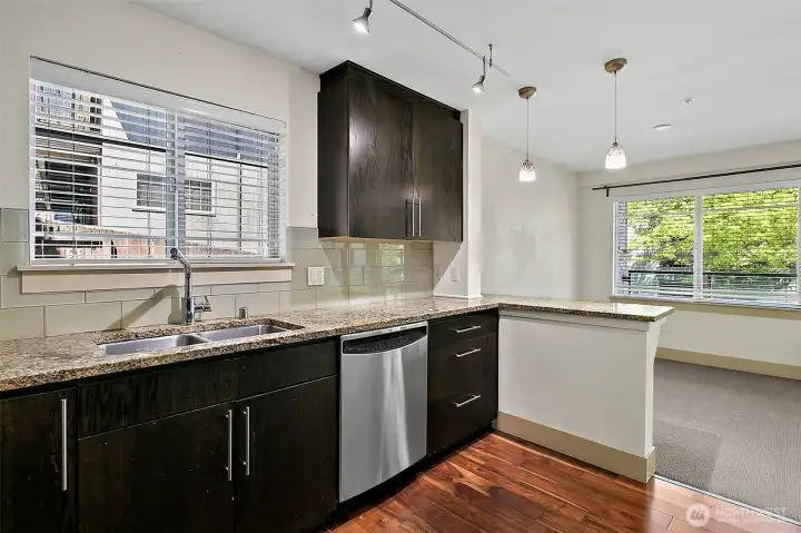 New price! Welcome to this bright and stylish corner unit in Downtown Bellevue at Continental Condominiums! This spacious 1-bedroom, 1-bath condo features a beautiful full bath with marble tile flooring, a spacious kitchen with granite counters, hardwood floors, and stainless steel appliances. French doors open from the sunlit living area to a large balcony—perfect for your morning coffee or relaxing evenings. Enjoy living with secured entry, a rooftop deck, and a beautifully maintained lobby. Just steps to Bellevue Square, restaurants, parks, and more. Comes with 1 reserved parking space, 2 storage units, no rental cap, and a well-run HOA. A perfect blend of comfort, convenience, and city living!