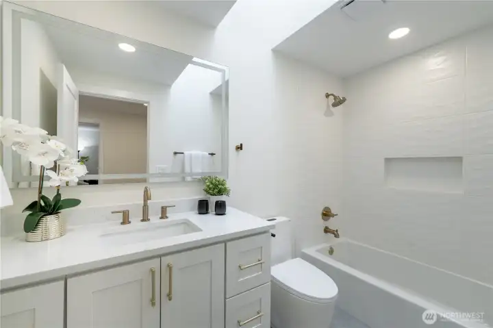 Seller providing 5% interest rate at $5,300/mo payment, $10k toward closing costs!! Totally remodeled tri-level in Hilton Lake, nestled on a serene cul-de-sac. Soaring ceilings + skylights flood open floorplan w/ sunlight. The chef's kitchen boasts quartz counters, matte cabinets, a striking grey island, custom tile backsplash + new appliances, designed for modern living. Upstairs, primary suite offers a spa-like escape w/ dbl vanities, walk-in closet + grand shower in designer tile, plus 2 add'l bedrooms. Lower level includes 2nd family room & utility space + oversized 2-car garage w/ EV charging. Close to trails, amenities & Hilton Lake. W/ AC & fully turnkey. Electrical, plumbing & final permits done. Its stunning in person, stop by!