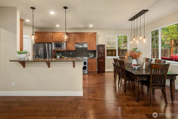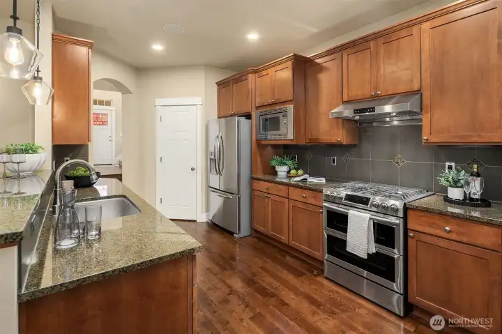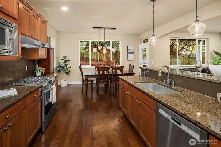 {{Turnkey and beautifully maintained}}, West-facing Harvest Run craftsman-style home offers spacious, light-filled living. Features include high ceilings, a warm & inviting great room anchored by a large feature gas fireplace. The chef’s kitchen shines w/ granite counters, stainless steel appliances, + a walk-in pantry. The dining area opens to a private yard w/ an entertainment deck & fire pit perfect for gathering or a quiet respite. Upstairs, enjoy a study space, primary suite w/ cathedral ceiling, tiled 5-piece en-suite & walk-in closet, 3 additional bedrooms, one ideal as a bonus room, laundry/utility room for added convenience. Wired for sound, landscaped, community play park, shops, great hiway access & top-rated Northshore schools.