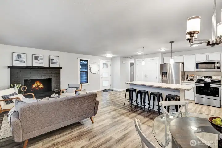 Beautifully updated rambler in Kirkland’s desirable Finn Hill community. This turnkey home blends timeless craftsmanship with modern design. The open-concept layout features a bright living area, dining space, and remodeled kitchen with quartz counters, white shaker cabinets, stainless appliances, and full-size pantry. A spacious bonus/rec room at the back of the home opens through sliding doors to a large, landscaped backyard—perfect for entertaining. The primary suite includes a walk-in closet and private bath. Updated with new windows, doors, flooring, trim, lighting, and landscaping. 1-car garage with extra parking.