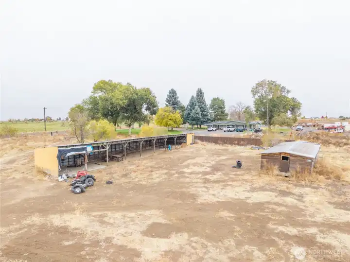 Unique and rare 5 acres north of town that sits perched up offering a rare territorial view of Moses Lake (located across the road from Block 40 Meats. Property is mostly fenced. 100' Well drilled in 2016 (will need power and a pump). Existing outbuildings. No covenants. Buyer to verify with county zoning and permitted uses.