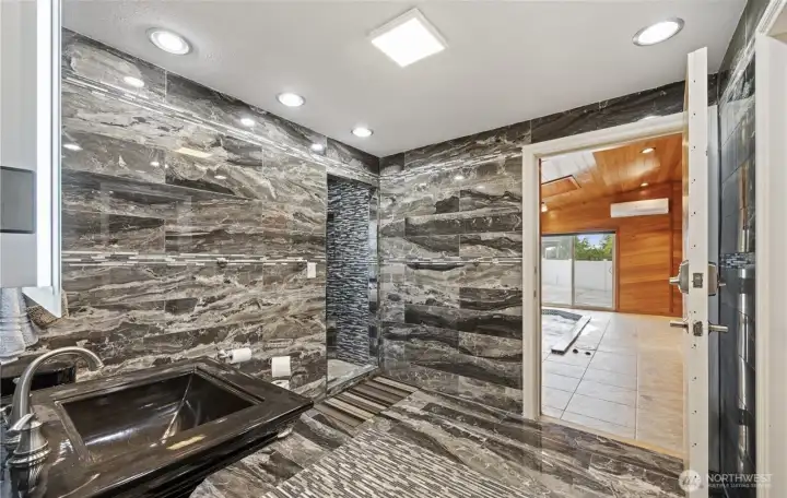 Experience resort-style living in this stunning 4,357 sq ft, 5 bed, 3.5 bath home on three city lots. Sunlight floods the interior through tall windows, highlighting the floor-to-ceiling stone fireplace and open entertaining areas. Host friends at your private bar, or retreat to the primary suite with walk-in closet and luxurious spa room, complete with oversized steam hot tub, exercise area, private bath, and skylights. Enjoy peace of mind with a wired backup generator that powers the home during outages, along with a new HVAC system. With ample space across three city lots, there’s even the potential to build a guest home, studio, or additional residence combining elegance, flexibility, and privacy in one rare property.