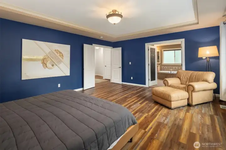 In the gated community of Cedar Ridge, this proud home is perched at the top of the neighborhood with Mountain views & the neighborhood park across the street. Backing to open space, a gate opens to the trail for running & riding your bikes to Donald Eismann Elem (in the coveted Bonney Lake SD). $77,000 in recent updates: New flooring throughout, repainted interior, new furnace & heat pump/AC with expanded elec panel & lighting. Chef's kitchen with commercial vent hood, granite counters, walk-in pantry & raised-panel cabinets. New lighting and engineer hardwood flooring through-out main floor. Den plus adjacent ¾-bath on main. Upstairs: luxurious primary suite with spa-like bath. 4 bedrooms + bonus upstairs. New washer/dryer. HUGE garage!