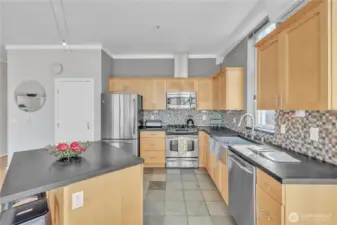 Stylish urban retreat in the heart of Pike Lofts! This light-filled 6th-floor NW corner home features soaring 9’ ceilings and panoramic city, lake and Sound glimpses. Modern kitchen with island, gas cooktop, pantry, and PaperStone counters opens to a spacious living area with gas fireplace. Two large bedrooms and luxe baths with heated floors. In-unit laundry, A/C, and abundant storage. Enjoy a serene waterfall lobby, elevator, and expansive rooftop deck. Pet-friendly, secure building with 2 deeded parking spaces. Prime location near Light Rail, Pike/Pine, downtown & SLU. Walk Score 99!