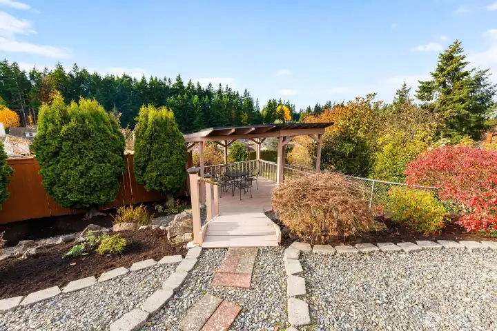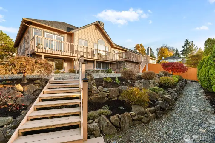 Perched in the Blue Ridge woodlands, this enchanting home balances serene seclusion and a short walk to Perrinville, Lynndale Park, shopping, dining, and top schools. Tailored for multi-generational living; enjoy the downstairs mother-in-law suite with dedicated entrance and inviting quarters. The sun-drenched main level boasts a vaulted-ceiling great room flowing into a chef's kitchen with rich oak cabinetry, spacious breakfast bar, and walk-in pantry. Upstairs, the primary suite offers a spa-like retreat with French doors to a Juliet balcony, generous closets, and en-suite bath. From the expansive deck, savor a manicured backyard oasis of layered rock gardens, winding stone paths, and a pergola-shaded seating area with built-in benches.