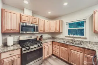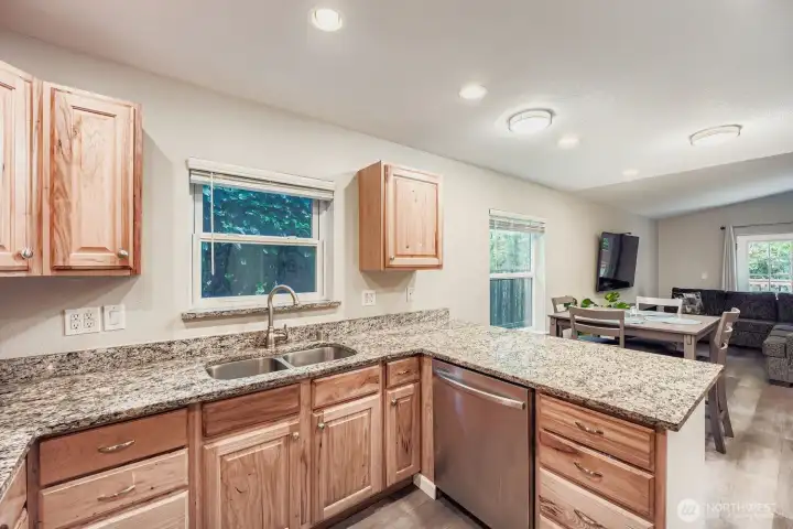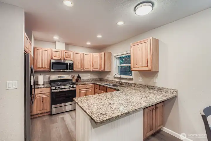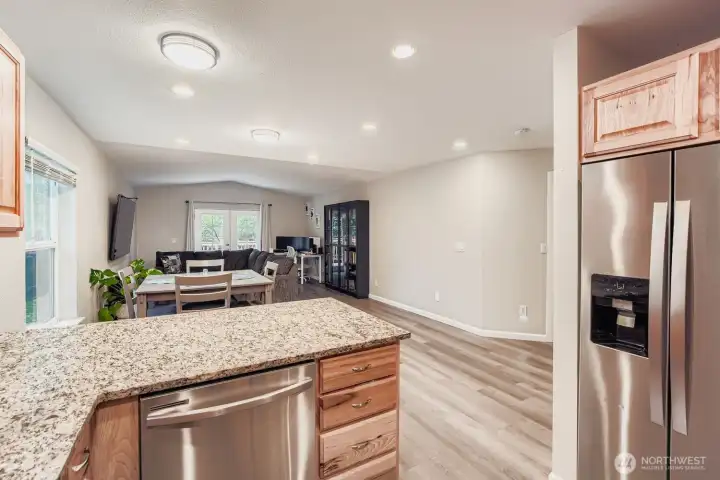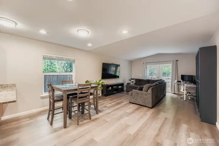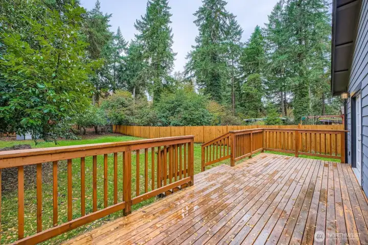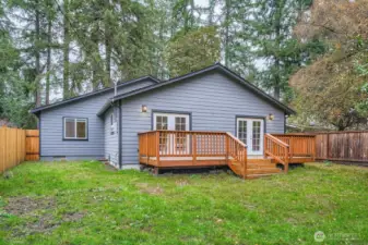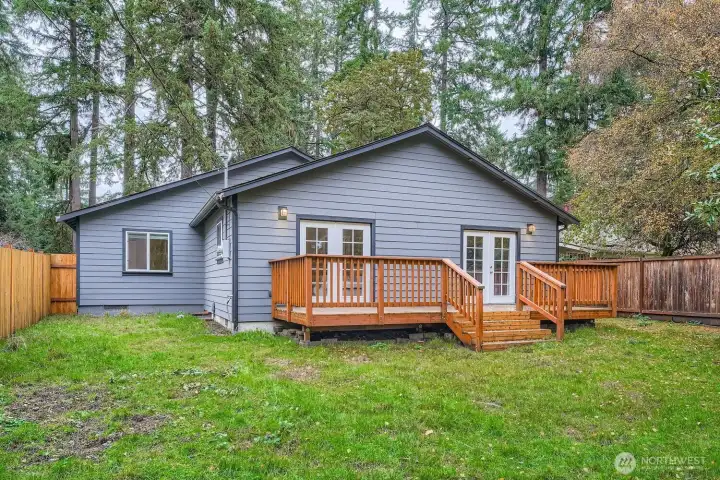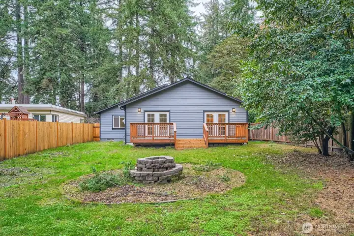 Beautifully maintained one-level home that blends stylish modern updates with an open, light-filled layout. Step into the living room with vaulted ceilings that enhance the spacious feel, adjoining a refreshed kitchen featuring stainless appliances, upgraded fixtures, slab granite counters & a walk-in pantry. Offering 3 bedrooms and 2 tastefully renovated baths, plus NEW carpet, luxury vinyl plank flooring, & fresh interior/exterior paint. The fully fenced 1/4-acre flat yard is ideal for gatherings, gardening, pets, & evenings by the firepit. French doors from both the living room & primary suite lead to a newly built deck overlooking serene, park-like surroundings—your own private retreat. Kayak or canoe launch just down the street.
