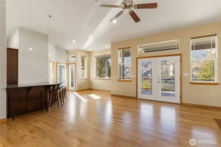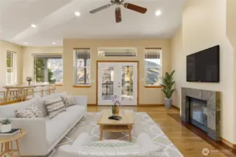 Experience luxury in this stunning Columbia River–view daylight rambler on over an acre, offering 4,000+ sq. ft. of beautifully finished living space. Soaring ceilings, hardwood floors, three fireplaces, and an open kitchen with cherry cabinetry, granite counters, stainless appliances, and a large eating bar. The primary suite features tall ceilings, a double-sided fireplace to the deck, and a remodeled bath. Two more bedrooms complete the main level. The daylight lower level offers a full bar, media area, arcade, bedroom, bath, and extra laundry-an entertainer’s dream. Smart HUE lighting, surround sound, dual HVAC, central vac, an expansive deck, irrigated grounds, and a 1,000 sq. ft. heated shop with radiant floors. Room for a pool!
