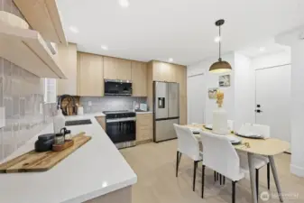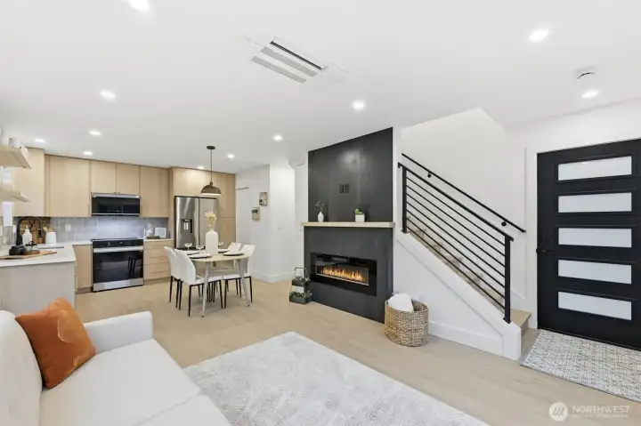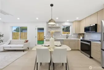 Located in the Haller Lake area, this thoughtfully designed new construction home offers 3-bed, 2.5-bath, 1-car garage across 1,089 SF of modern living space. The open-concept main floor features a bright kitchen with quartz countertops, stainless steel appliances, Premium LVP flooring, dining area, and air conditioning. Upstairs, all bedrooms feature vaulted ceilings, including the primary suite with ensuite bath and walk-in closet. Two additional bedrooms and full bath complete the upper level. Garage is EV charger ready. Outside, enjoy a private yard with patio, ample parking and potential RV parking. Conveniently located near parks, shopping, restaurants, transit, and light rail in a quiet neighborhood just minutes from Lakeside School.