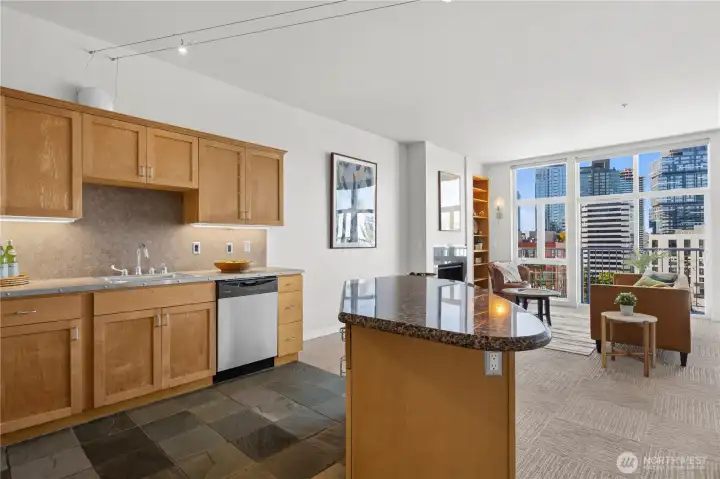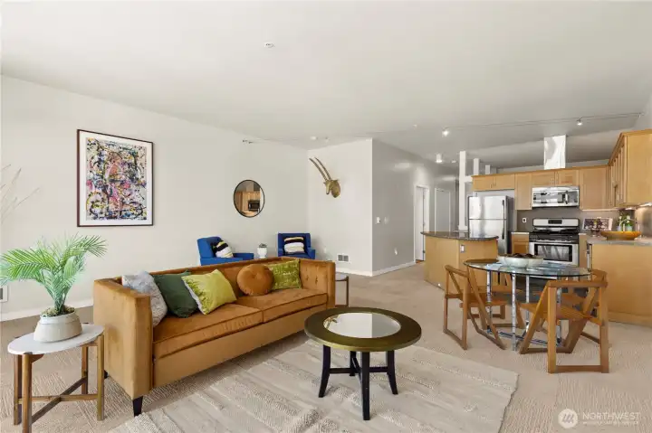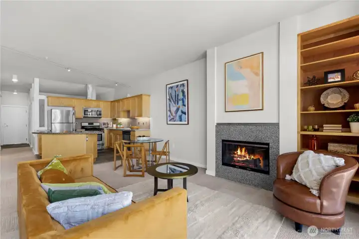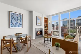Incredible spacious 6th floor home with vibrant Seattle Skyline & Lake Union views! Welcome to Pike Lofts- a beautiful secure condo perfectly situated between Downtown & Capitol Hill for the best of in-city living! This stylish building has such a cool vibe! Open spaces with expansive window wall & high ceilings create a gallery-style space that elevates daily living. Gas fireplace for warmth and ambiance. Flexible open living spaces. Bright and inspiring kitchen with breakfast bar. In-unit laundry. Secure building and secure parking. Primo Pike/Pine locale! Walkscore 99. No rental cap.