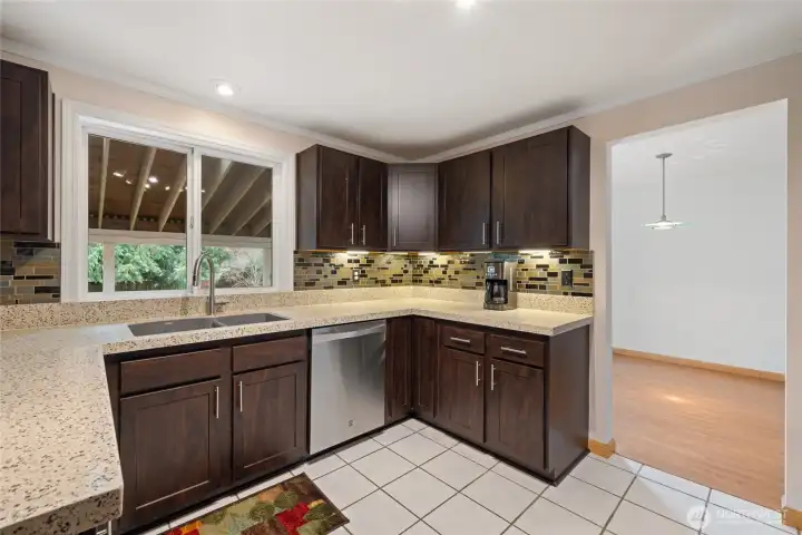Welcome to this secluded Park-Like Estate with mature landscaping, conveniently located blocks from the new Canyon Rd extension. Updated kitchen w/ quartz counters, eating bar, stainless steel appliances, and brand-new gas stove. Updated bathrooms w/ quartz counters and new commodes. Formal dining and living room, family room w/ new high-tech gas fireplace. No worries w/ a newer roof, furnace and heat pump installed in 2023, and a newer hot water tank. The backyard is set up for entertainment, including a 14X20 patio, a 16X30 covered deck w/ skylights, two storage sheds, one 10x12 w/ power, sprinkler system, and an extra shaded patio area. Oversized garage w/ shop area, and an abundance of parking for RV, boat, and additional vehicles. WOW!