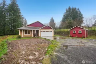 Welcome to this single-level home on 3.29 acres of tranquil usable land. This charming home features 3 bedrooms and 2 bathrooms with a great open floor concept. Kitchen features new stainless steel appliances propane stove and ample storage. All new LVP flooring in main part of home with cozy wall-to-wall carpet in the bedrooms. Walk-in shower in the primary bedroom makes for easy access. Shop is 44X80 with three large garage doors 14X20 & 2 12X12 Store the RV and great workspace! Fully insulated with heated floors! ADU room with walk-in shower, toilet & washer dryer hook up just waiting for the finishing touches! RV hook-ups usable land for garden or animals. It is the perfect blend of comfort and functionality in a great country setting!