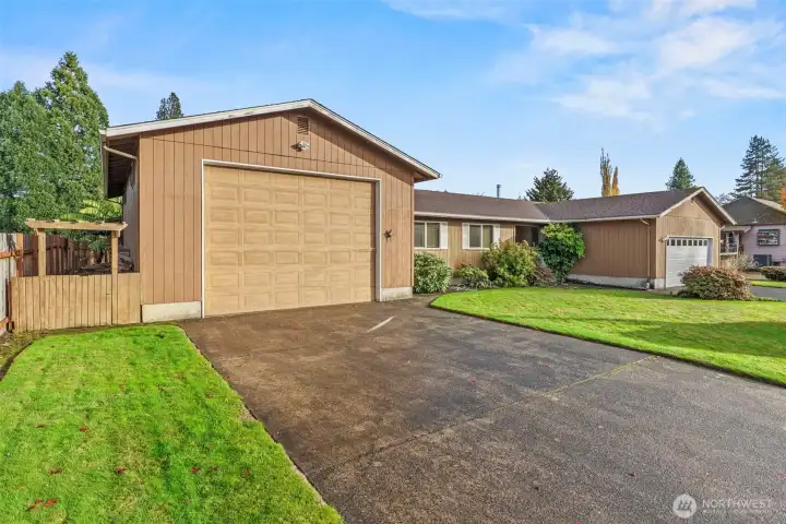 Move-in ready one-level home offering 3 bedrooms and 2 baths in a highly sought-after area. The property includes an attached garage plus a large attached shop with room for RV parking, providing excellent storage and workspace options. Enjoy a fully fenced backyard for privacy and safe outdoor play, and benefit from quick access to nearby schools, shopping, and I-5 for an easy commute. Perfect for , hobbyists, or buyers seeking single-level living with extra utility space.