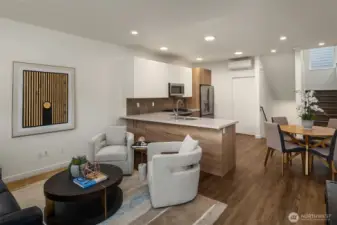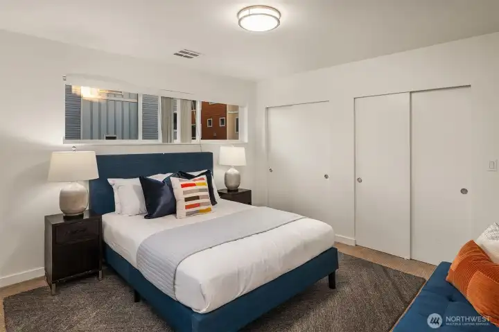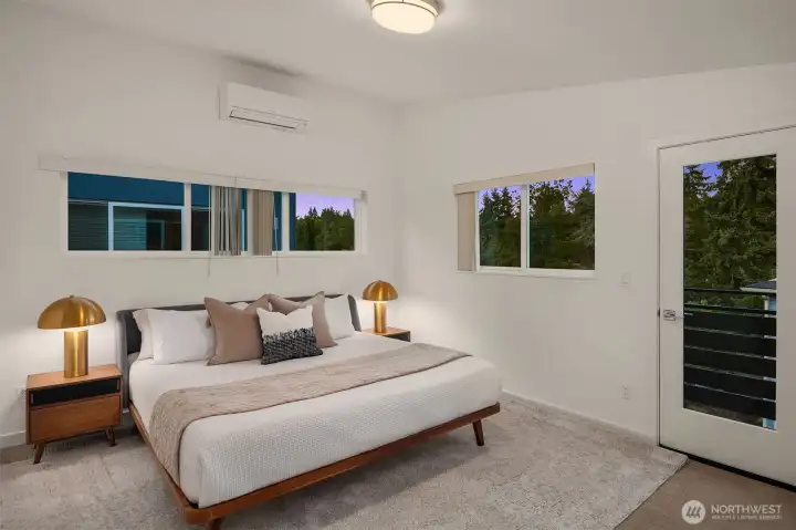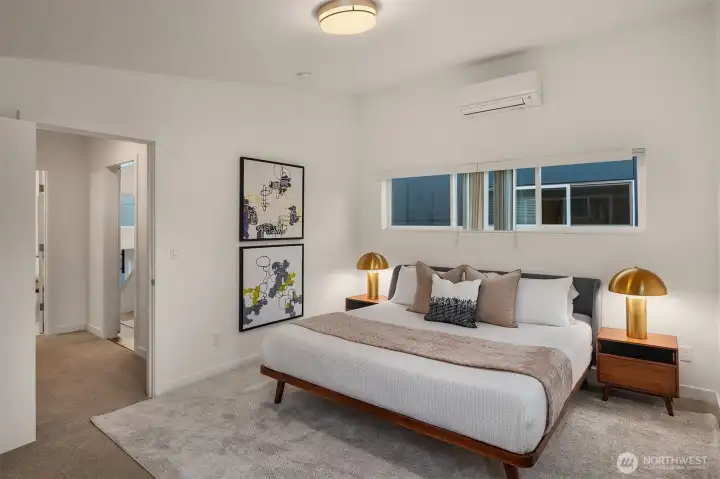 Modern standalone townhome combines elevated design with innovative three-floor layout. Open-concept main level is flooded with natural light + attached balcony expands options for entertaining. The spacious chef’s kitchen offers stainless-steel appliances, quartz counters + stunning dual-hued cabinetry. Entire upper level is a luxurious primary bedroom suite with balcony. Unique loft space just off this bedroom is perfect for home office, reading nook, or creative studio. Two guest bedrooms + full bath on first level. Energy-efficient mini-split. Low-maintenance yard plus dedicated off-street parking with adjacent EV charger. Close to light rail, major commuter routes + local restaurants.