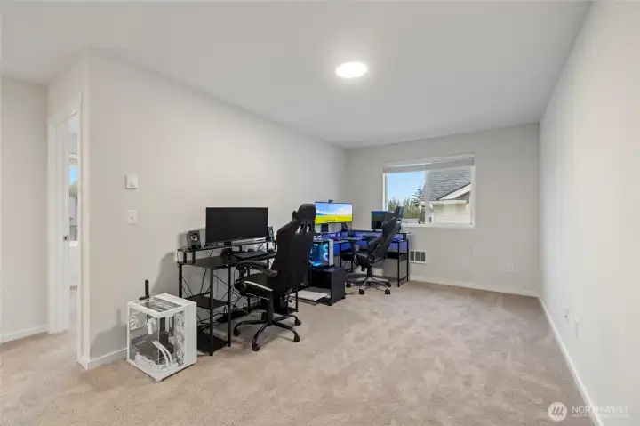 Adorable, nearly new 3-bedroom, 2.5-bath home in the highly desirable Ferndale area—close to everything! With nearly 2,200 sq. ft., this home is designed for comfortable living. The main level features the primary suite with a walk-in closet and private bathroom, a den, and a utility room, plus an open-concept living, dining, and kitchen with a walk-in pantry. The kitchen is beautifully finished with white soft-close cabinets, quartz countertops, and stainless steel appliances. Upstairs you’ll find two bedrooms, a full bath, and a spacious loft—perfect for a playroom, office, or extra living space. Enjoy year-round outdoor living under the covered patio, and take advantage of the large 2-car garage.