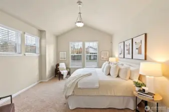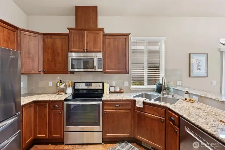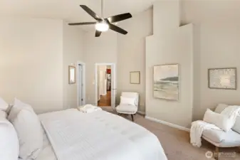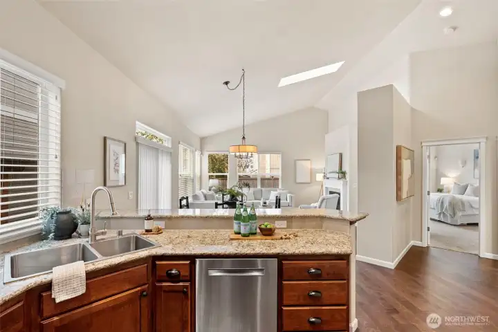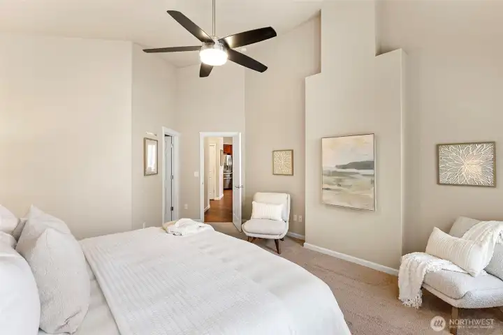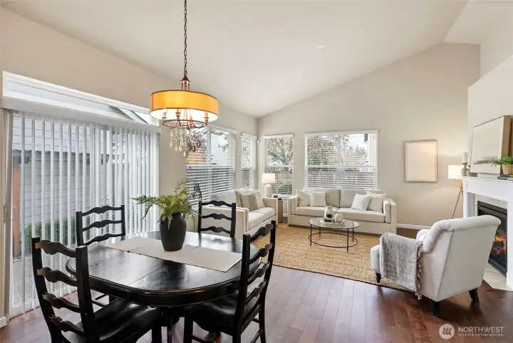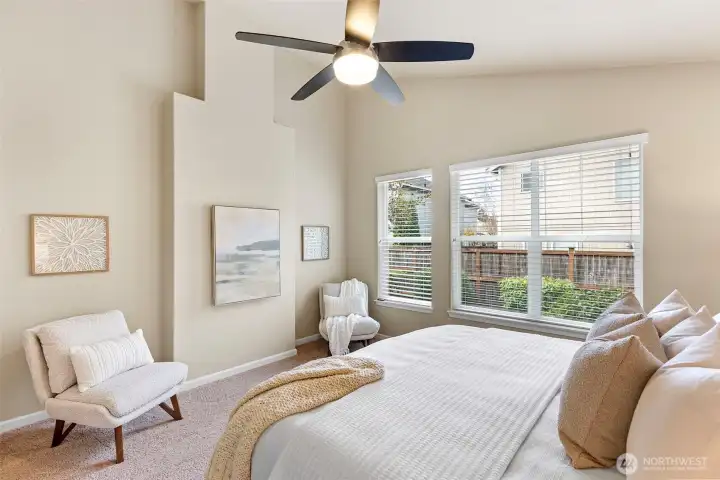 The home of your dreams—style, comfort, and effortless living! This well designed home features two generously sized bedrooms, each with its own private ensuite, offering the ideal layout for privacy and convenience. High-end finishes throughout include soaring ceilings, rich wood floors, and a cozy gas fireplace that creates a warm and inviting living and dining space—perfect for gatherings and entertaining. The kitchen includes storage for everyday ease, while the laundry/mudroom provides direct access to the attached 2-car garage. Enjoy a low-maintenance backyard while HOA taking care of the front, more time to relax and enjoy life! This home is a wonderful opportunity for anyone seeking stylish, comfortable, and easy living.