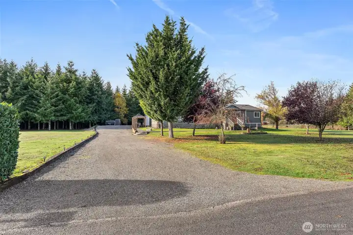 Immaculate Palm Harbor home nestled on just a shy 5 acres in a stunning park-like setting w/beautiful mature trees. Charming 3 bed, 2 bath home that features spacious office area, 1780+ sq.ft. of living, amazing kitchen w/a large island an dining space perfect for gatherings & entertaining. Enjoy the 768+- sq.ft. of additional finished space above the oversized shop/garage, complete with 1/2 bath, ideal for entertaining, private living quarters' or even rental opportunity. The expansive shop offers endless possibilities for hobbies, storage or workshop. Located close to I-5, this home ensures an easy commute while being near parks, fishing spots, & sports hub. Experience tranquility convenience & versatility all in one exceptional property.