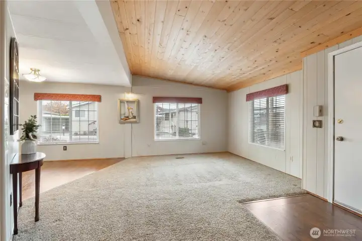 Peaceful riverfront living, where every day feels like a retreat. Unwind on the spacious deck, take in the soothing sounds & views of the river, or enjoy a quiet morning coffee surrounded by nature with a peakaboo view of Rainier. Inside vaulted pine ceilings & abundant natural light create a warm, inviting atmosphere that’s perfect for gatherings or peaceful moments at home. The thoughtfully designed layout with 2BR + Den & 2 baths blends comfort & charm. Beautiful finishes throughout. Nestled in the friendly 55+ Golden Rose community, residents enjoy a clubhouse with billiards room, craft & fitness areas, library, BBQ patio, riverfront& walking paths & pet-friendly spaces. Close to downtown Puyallup shops and restaurants. Come see today!