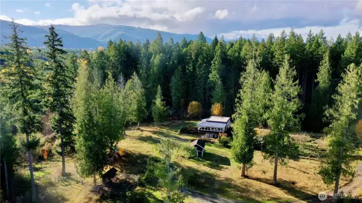 This lovely 2 bd, 2 ba home, tucked away in the tranquil forest provides every comfort. 6 private acres backs up to Weyerhaeuser. Cozy wood stove, Propane & Solar Power keeps this off grid home comfortable all year round. Double construction walls will provide a cool home in the summer & keep it warm in the winter. New kitchen cabinets. Fresh interior paint. Raised garden beds are waiting for spring planting. Established fruit trees will start blooming soon. Bike & walking trails. Enclosed front deck almost doubles living space. This home provides all the security & independence one could hope for, & still has all appliances needed for easy living. No compromises needed! Hot water on demand, dishwasher, washer & dryer. This is the dream!
