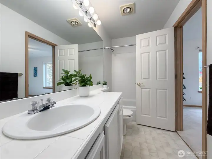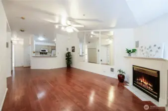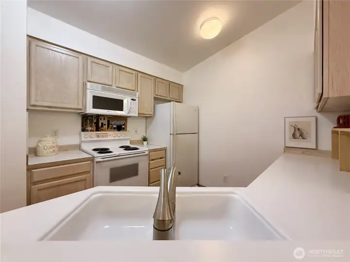 Welcome to Keaton's Landing. This top floor unit features vaulted ceilings for a larger feel. Open living/dining area with vaulted ceiling, cozy gas fireplace and door to the balcony that overlooks a lovely greenbelt. A great place to enjoy your morning coffee. The primary bedoom features a private bath, walk-in closet and access to the balcony. Large 2nd bedroom and full bath. Move in ready with fresh paint and carpet. All the appliances stay including full size washer/dryer. Single car garage with space for additional storage. Low HOA dues includes Water, Sewer, Garbage, Grounds Maintance and Car Washing Station. Wonderful and serene location minutes to everything!