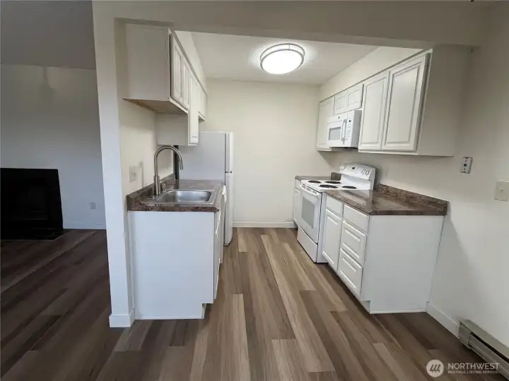 Commuter's dream location! Minutes to the airport, I-5. 405 and Angle Lake Light Rail stop. Adjacent to Valley Ridge Skatepark and Fields, Angle Lake Park, and the brand new Tyee High School! Dead-end parking, no drive-by traffic near your entrance. Totally new interior paint & totally new flooring. New bathroom cabinet, mirror, lights. Barely 2-year-old water heater! Enjoy lot's of color changing follage from all your windows. Cozy wood-burning fireplace. Bedroom features almost wall-to-wall closet & tree view. In-unit combination washer-dryer. New Microwave. Amana dishwasher