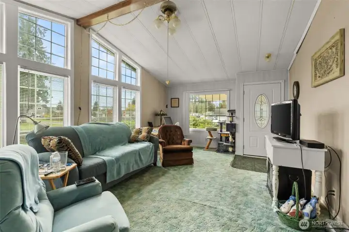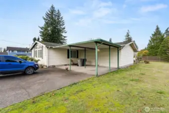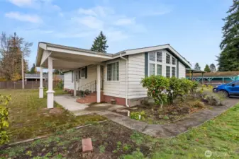 Charming corner-lot home in the heart of Elma! This well-maintained property features a fully fenced yard offering privacy and space for pets or gardening. Enjoy the convenience of a two-car garage plus a covered carport—perfect for extra parking or projects. The open-concept layout flows seamlessly through the main living areas, enhanced by vaulted ceilings and large windows that fill the home with natural light. The primary bedroom includes a spacious walk-in closet and a full ensuite bath. Step outside to a generous patio area ideal for entertaining or relaxing. Comfort, functionality, and curb appeal all come together in this move-in-ready Elma gem!