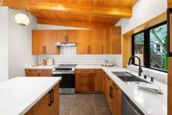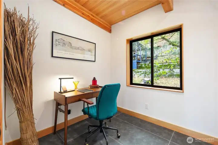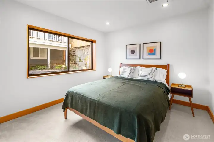 This custom Wallingford home maximizes living space on the second level for a treehouse-inspired view east toward the steeples and high rises of the University District. Pride of place comes from local cedar siding, fir vaulted ceiling and exposed beams. An abundance of windows invite year-round daylight, and all-season comfort comes via mini-splits and radiant floor heating. The level of finish is uncommon in new construction: enjoy a sleek entry bench and baths that are thoughtfully detailed. Located blocks from the hidden gems of Tangletown, moments to Green Lake, and in close proximity to Roosevelt and U District light rail. An attached one-car garage is wired for EV or could function as a creative workspace or home gym.