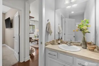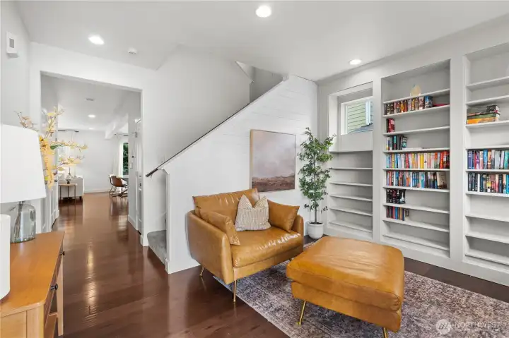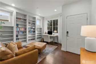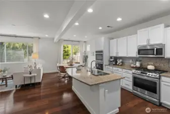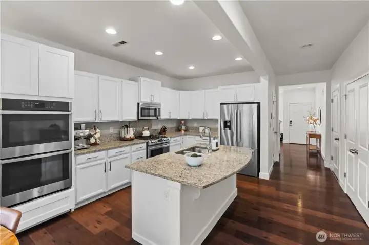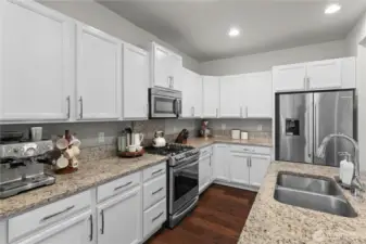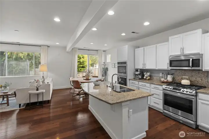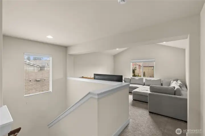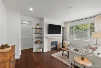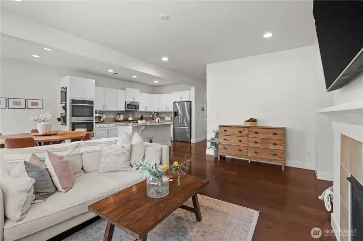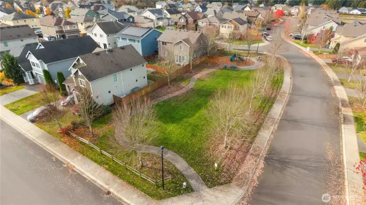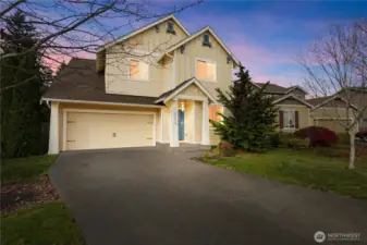 Welcome home to this spacious 4 bedroom property with an open concept kitchen and living room, stunning built-ins, cozy fireplace, & beautiful engineered hardwoods flooring. The main level offers a flexible bedroom that also works well as an office, with useful 3/4 bath just across the hall. Living/kitchen/dining space blends together perfectly for entertaining, useful center island, stainless appliances, & dual ovens. Upstairs you will find the primary suite, 2 additional bedrooms, and a generous loft space that adds valuable living space. This home is wired as a smart home for modern convenience and functionality. Charming neighborhood includes a playground, basketball court, and only minutes from shopping, restaurants, and JBLM access.