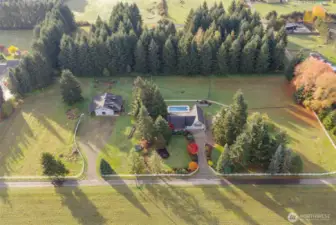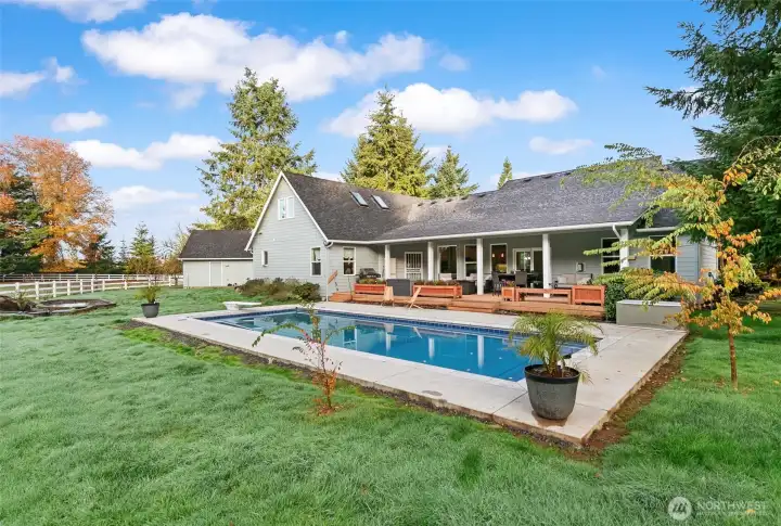 Welcome to your private 5-acre retreat with beautiful views of Mt. St. Helens! This move-in-ready home features fresh interior and exterior paint, newer flooring, quartz countertops, and a functional layout with the primary suite and two additional bedrooms on the main level, plus two large rooms upstairs. Enjoy spacious living and dining areas that flow easily for everyday living or entertaining. The barn includes a 12x12 tack room, three 12x15 stalls with 16x24 paddocks, hot water, half bath, and attached lean-to. A fully finished detached shop offers a roll-up door, gas heat, and six 220v circuits—ideal for projects or storage, plus a garden shed w/loft and Saltwater, heated pool with diving board, koi pond, and landscaped grounds.