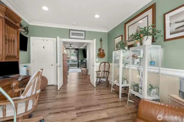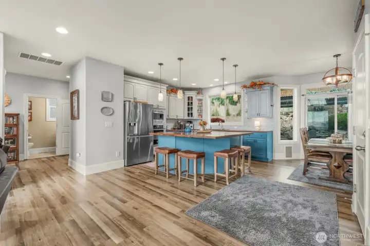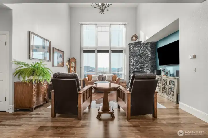 Stunning Home in Pierce Pointe on cul-de-sac. 4-bed, 2.5-bath home. Open-concept main living area w/ LVP flooring, vaulted ceilings & wall of windows w/ mountain & Columbia river views. Living room w/ fireplace. Kitchen w/ SS appliances, cook island w/ eat bar & pantry. Dining area w/ sliders to covered patio. Family room w/ perimeter lighting for 2nd gathering space. Bedroom for guests or home office. Upstairs primary suite w/ perimeter lighting, walk-in closet & private bathroom. 2 more bedrooms, guest bath & loft. Private, fenced, tiered backyard. Upper grass yard surrounded by lush landscaping, water feature & gas hookups. Near dining, shopping & Cottonwood Beach on Columbia River. Updates include light fixtures, paint, landscaping.