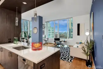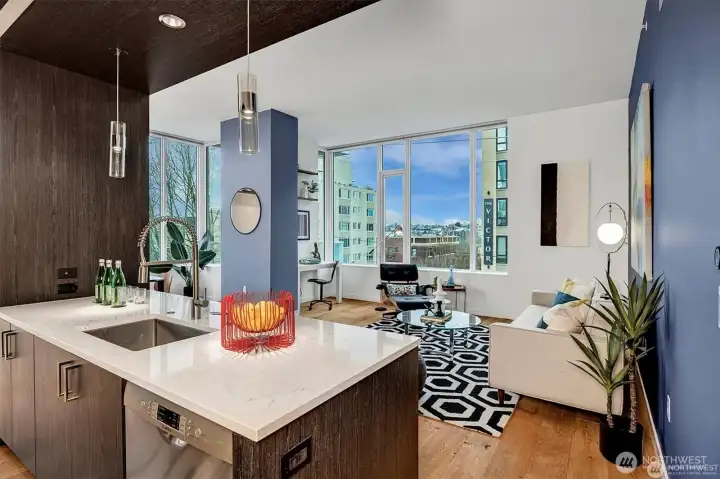 Luxury living in an enviable location! This meticulous condo offers a sought-after 2-bedroom floor plan with elevated views from every room and timeless finishes throughout. Luma, located at the intersection of First Hill and Pike/Pine, boasts sophisticated interior finish palettes, 9-foot ceilings, and expansive windows showcasing sweeping views of downtown, the Cascades, the Olympics, and Lake Union. The 24th-floor rooftop amenity level is unparalleled, featuring an expansive terrace, a jetted infinity spa, a fireplace lounge, a library, a private dining room, and a chef’s kitchen. Additional amenities include a concierge, a fitness center, secure parking, and dog run & wash lounge.